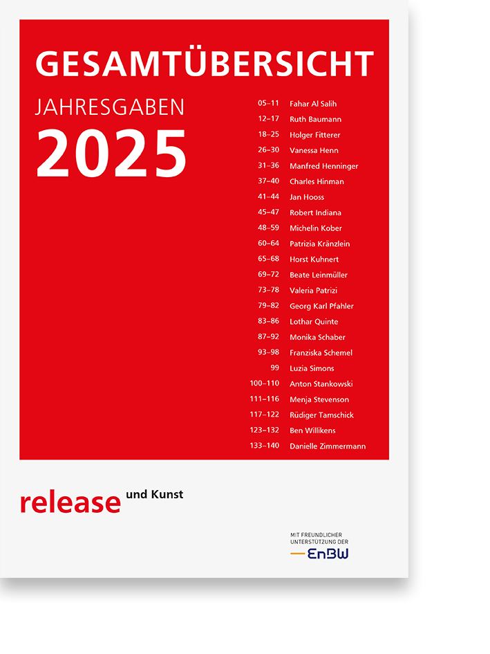 Unter dem Titel „Release und Kunst“ verbinden wir seit 1994 ein anspruchsvolles künstlerisches Ausstellungsprogramm mit der finanziellen Unterstützung unserer Arbeit. Wir präsentieren renommierte und junge Künstler in jährlichen Verkaufsausstellungen und geben eigene Editionen heraus.
